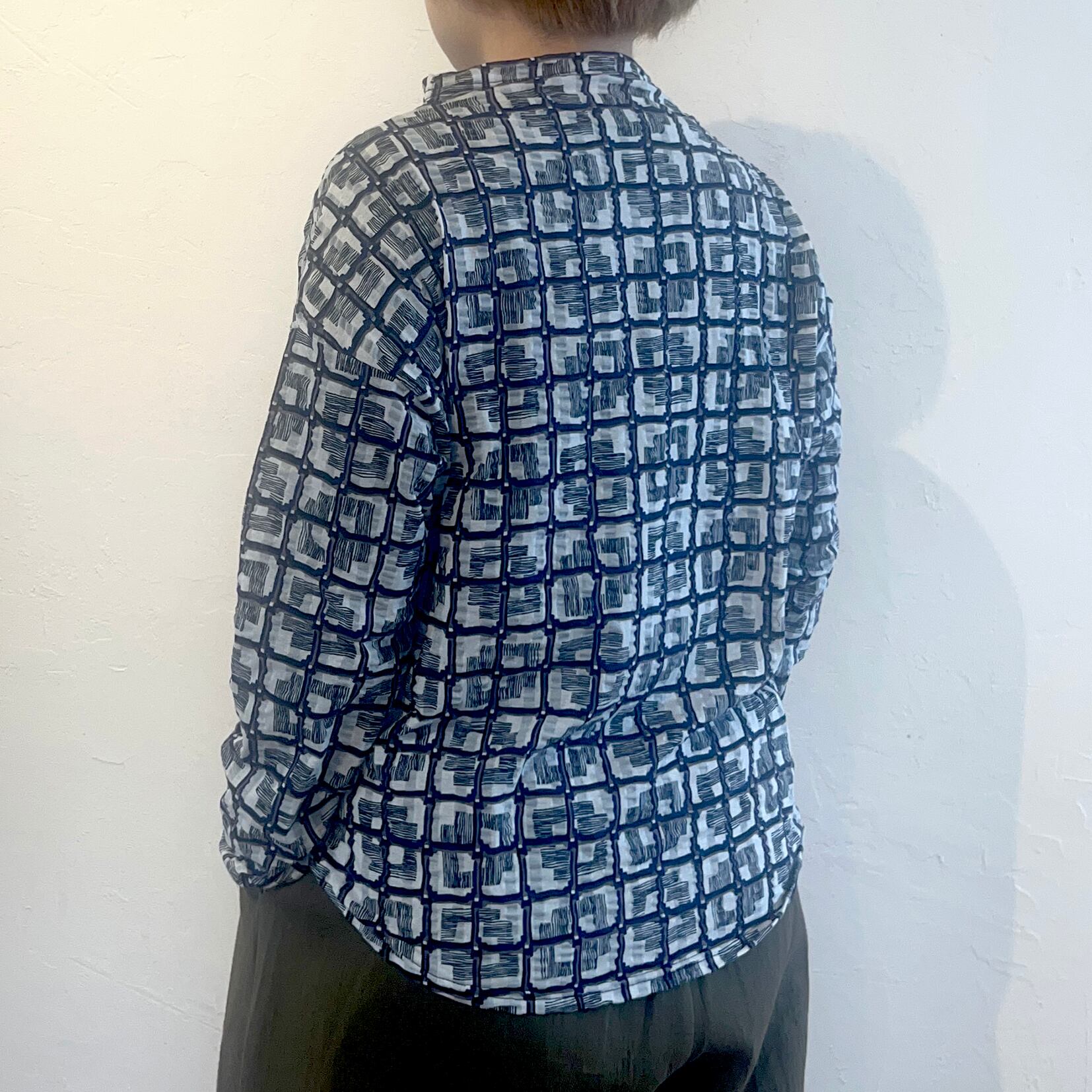 少し立てたネックラインは、上品さを演出し、顔周りをスッキリと見せてくれます。