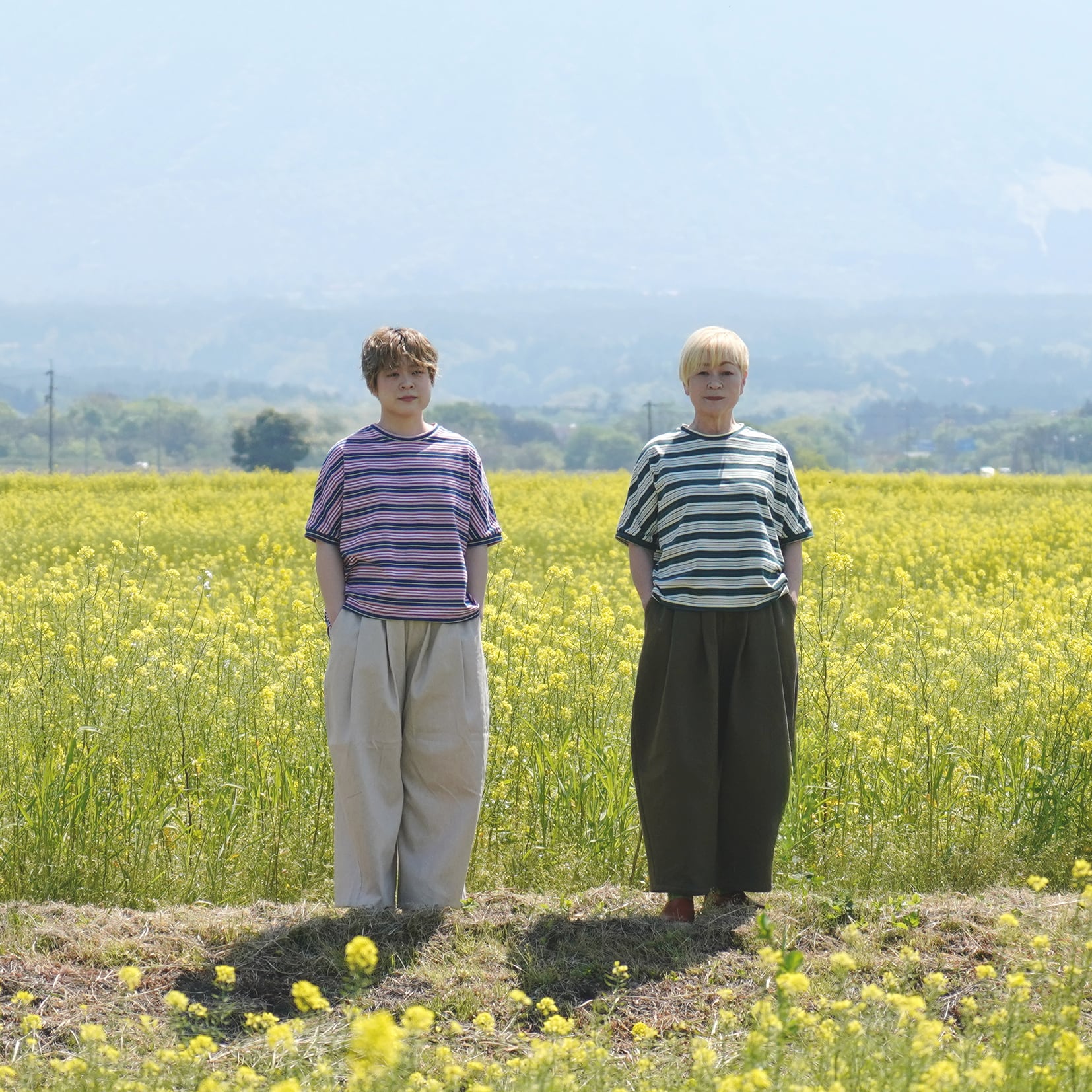 (左)Bottoms:unseul コットンリネンタックパンツ <オートミール>