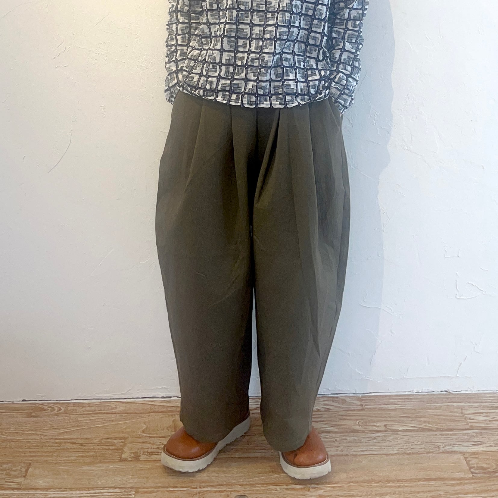 こちらのタックパンツは、下半身のラインを美しく見せるデザインが魅力の一品です。