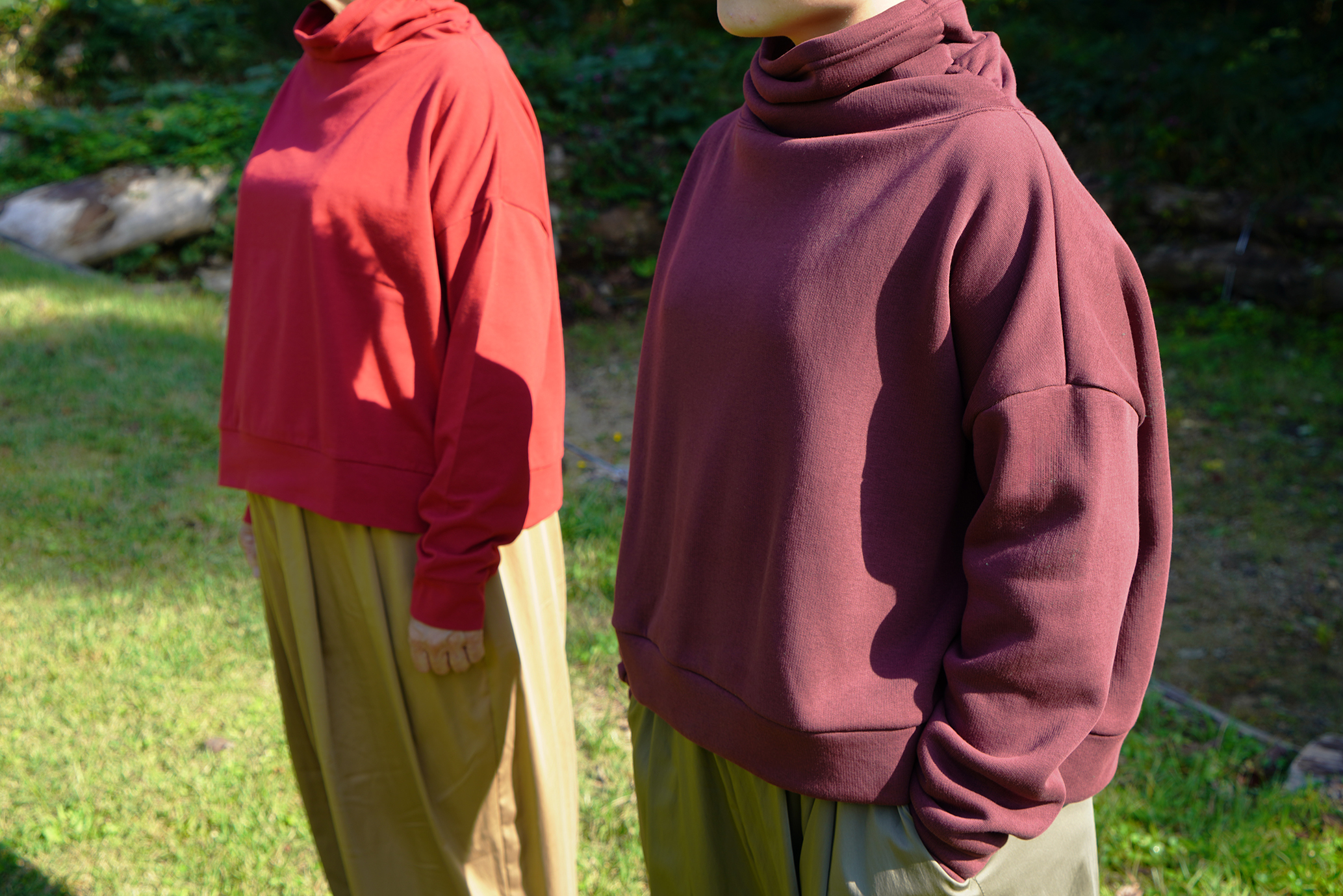unseul 裏起毛ハイネックギャザートップス <バーガンディー>