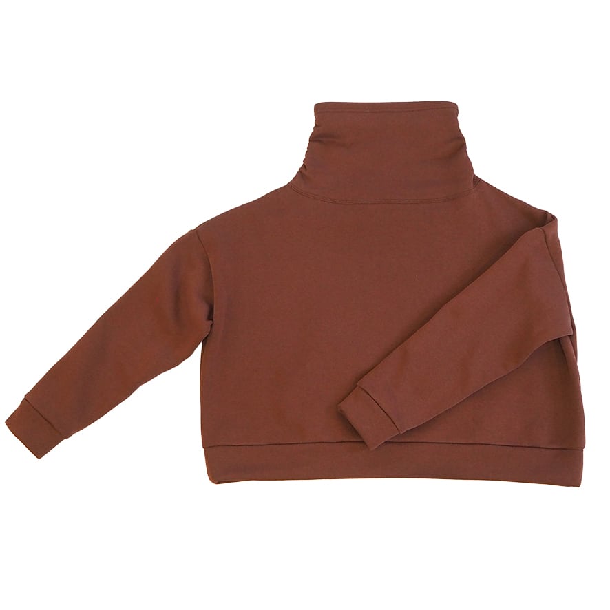 裏起毛のハイネックギャザートップスは、肌触りの良い裏起毛素材が心地よい暖かさを提供し、これからの寒い季節に快適に過ごせます。