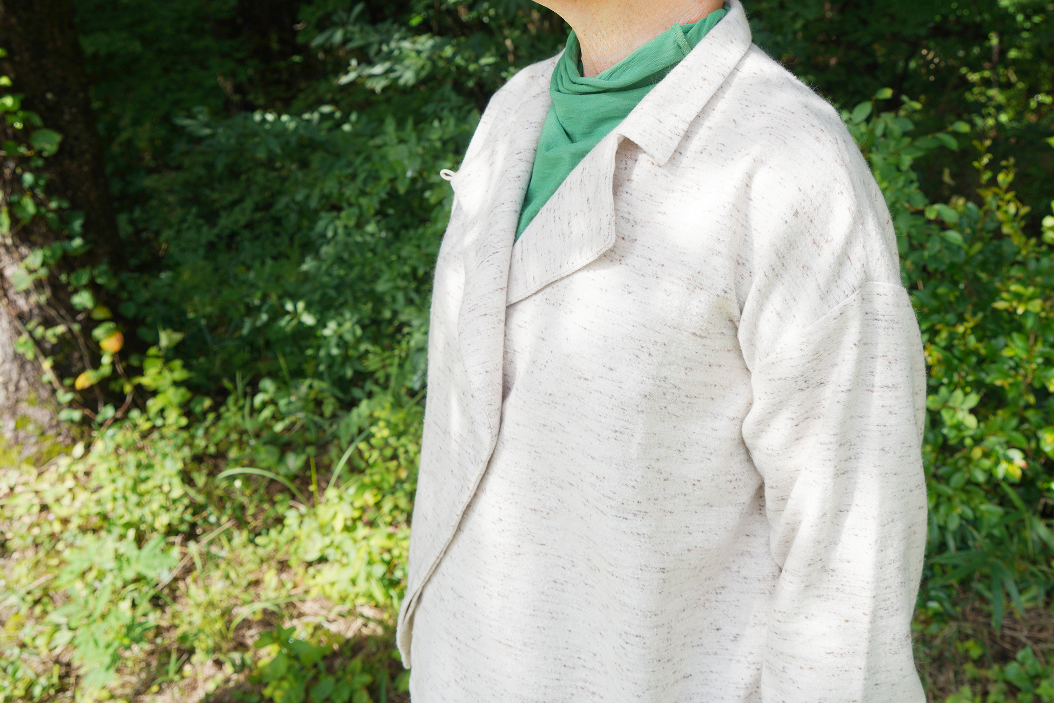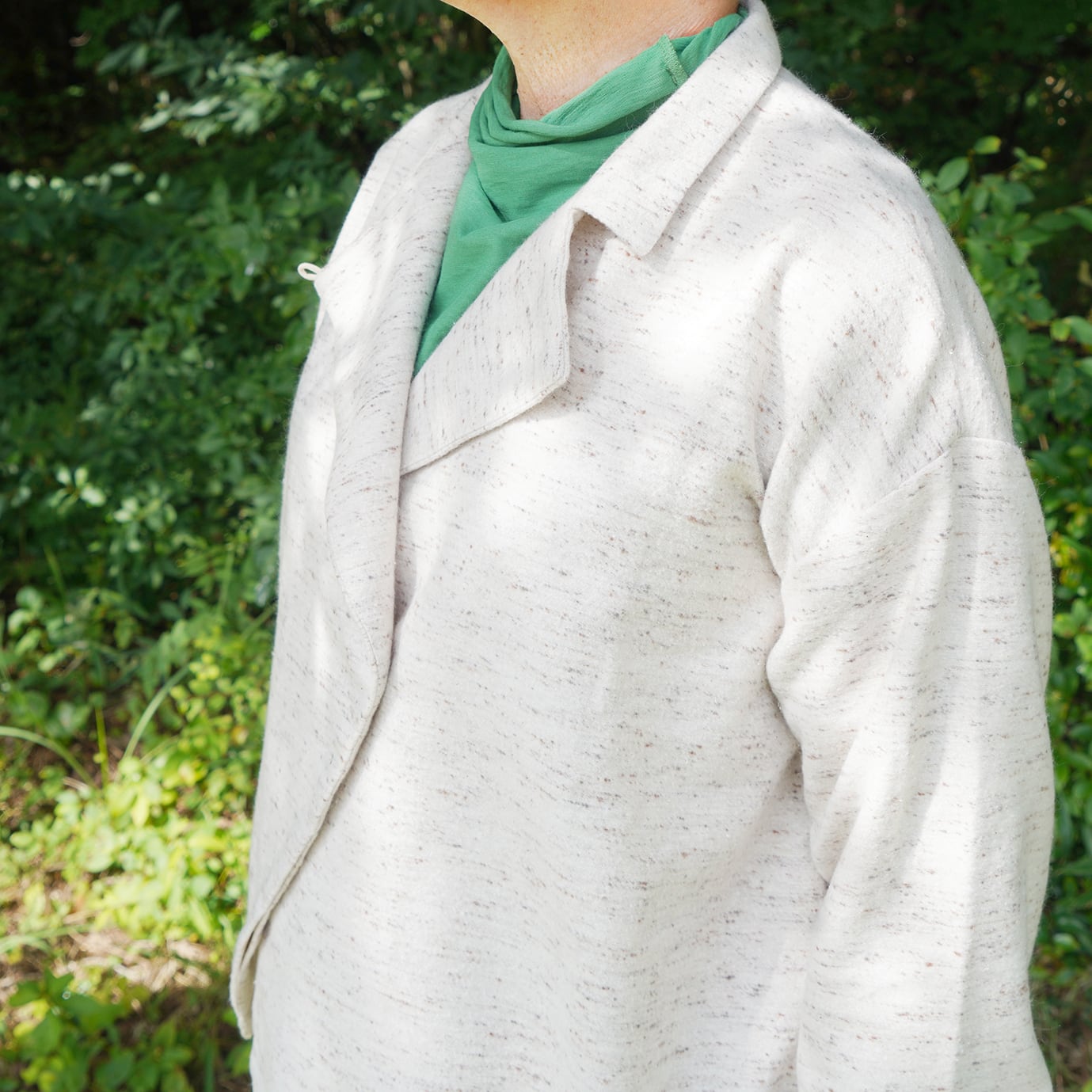 ジャズネップ生地は全体にぽつぽつとした節(ネップ)の模様があり、あたたかみと立体感のある表情が特徴です。