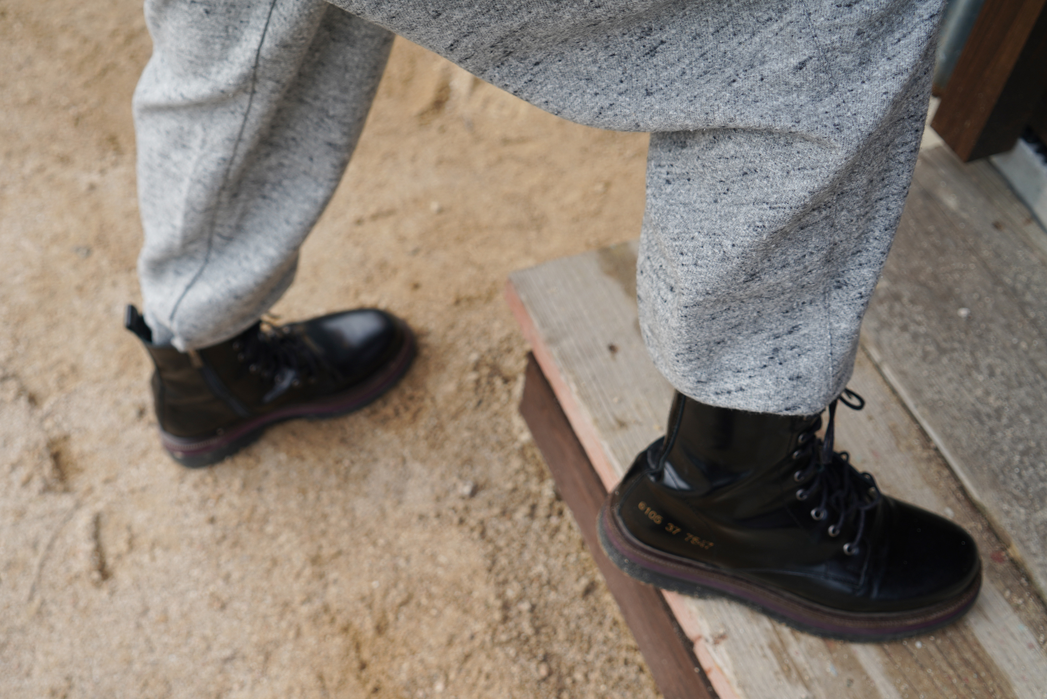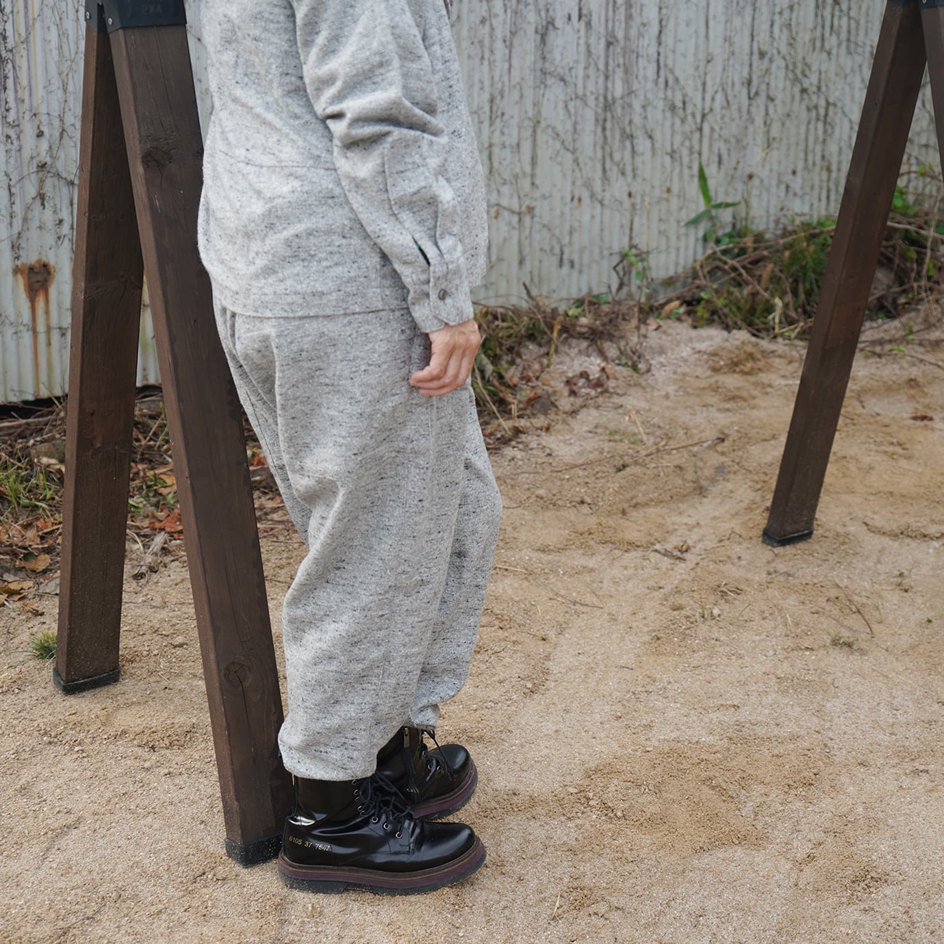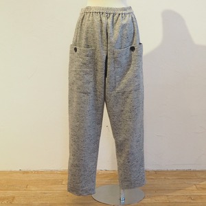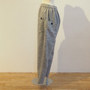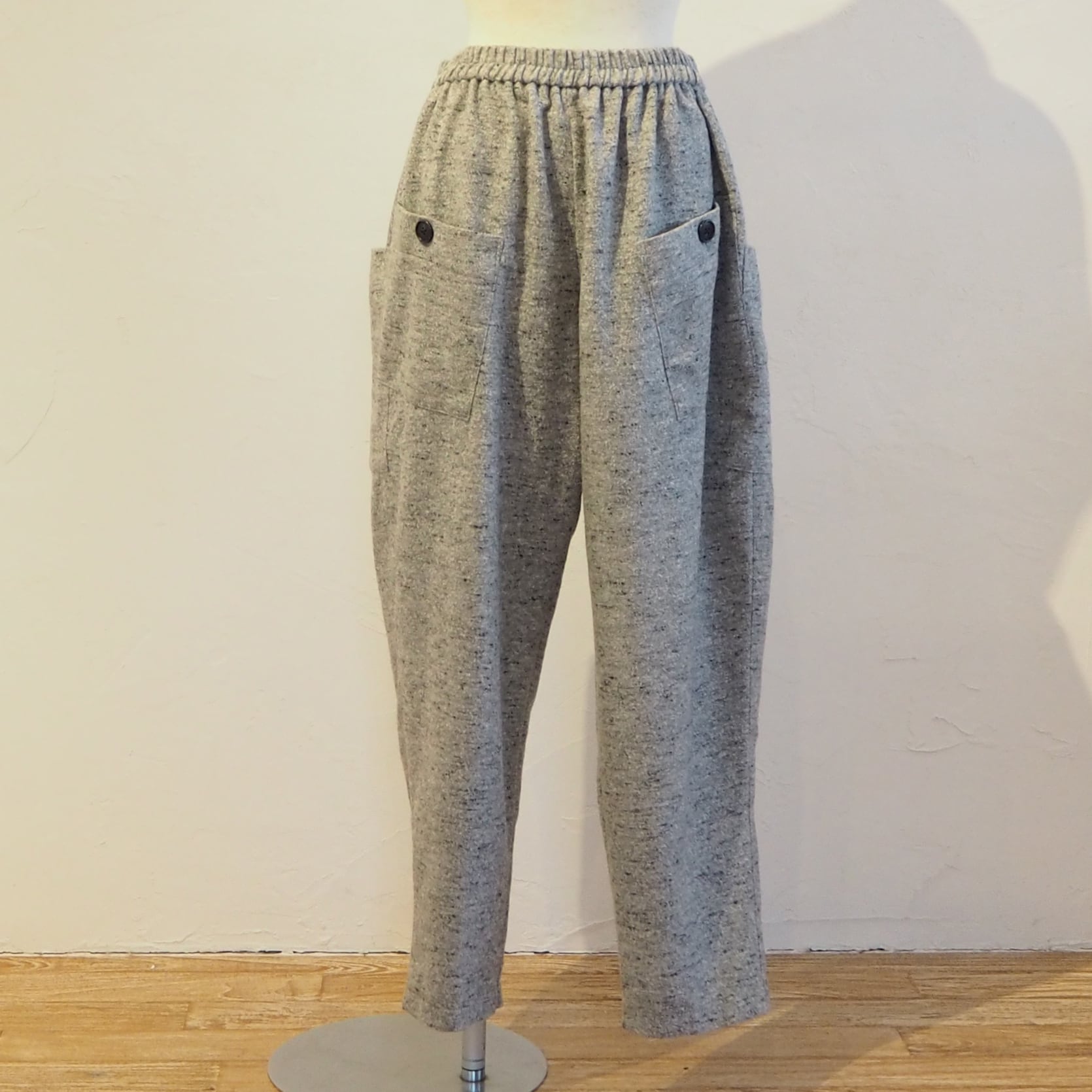 ヒップや太もも辺りはゆったりとしたシルエットで、裾に向かって細くなる、ワイドすぎないエッグパンツシルエットです。