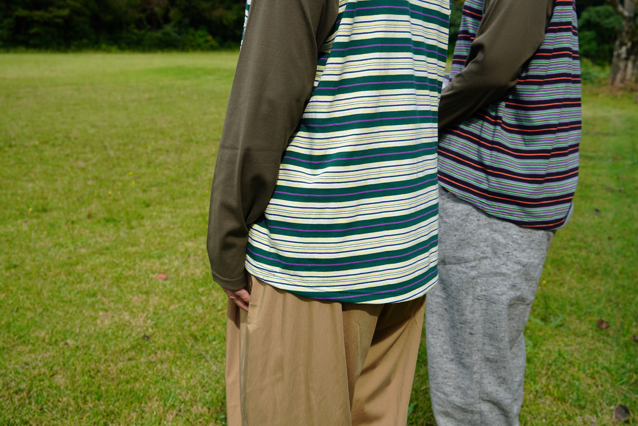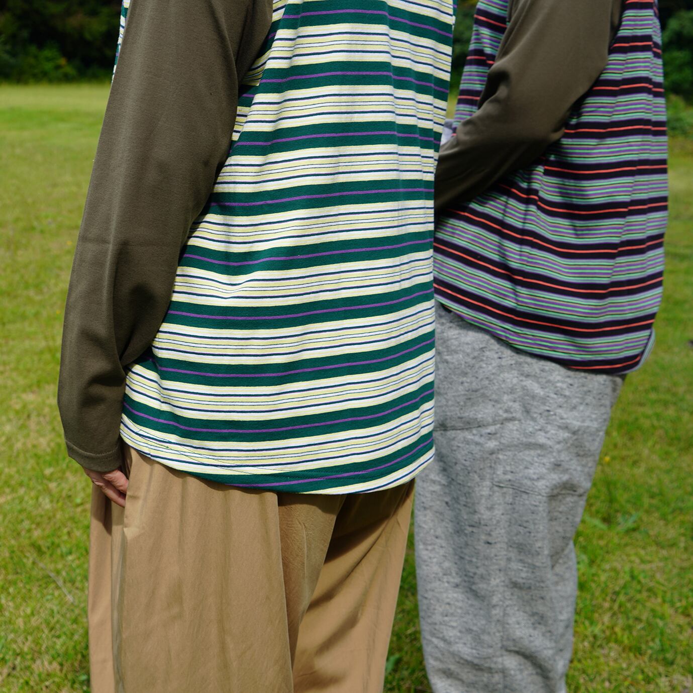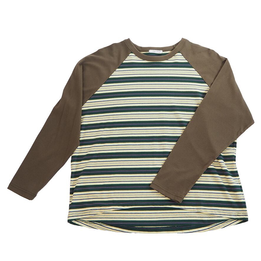 unseul マルチボーダーラグランロンT  <グリーン×イエロー>