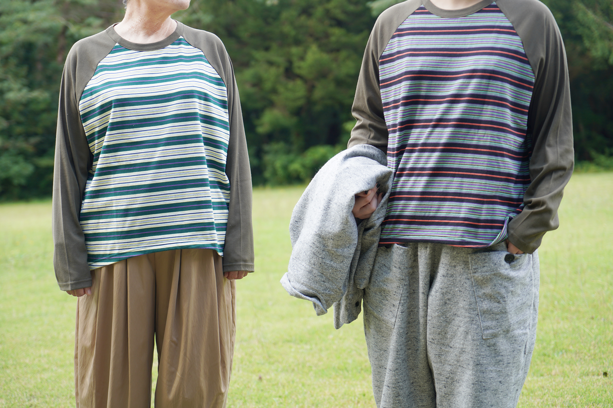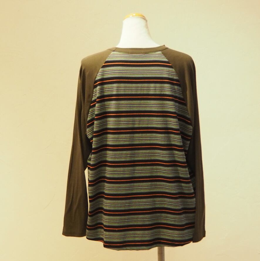 マルチボーダーラグランロンTは、スタンダードなラグランデザインで、unseul特有のゆったりとしたシルエットが特徴です。