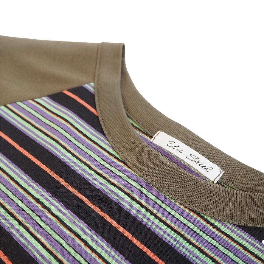 unseul マルチボーダーラグランロンT  <ブラック×パープル>