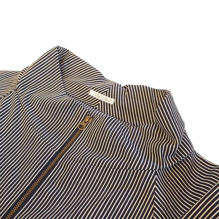 首元が独特なデザインのヒッコリーダブルジップジャケットです。