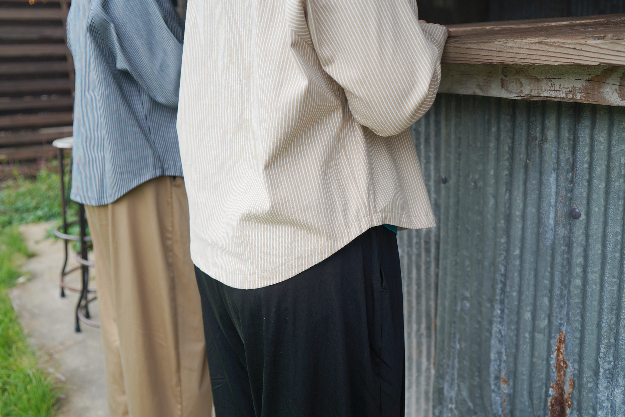 ネイビーヒッコリーはしっかりとしたメンズライクな生地感、